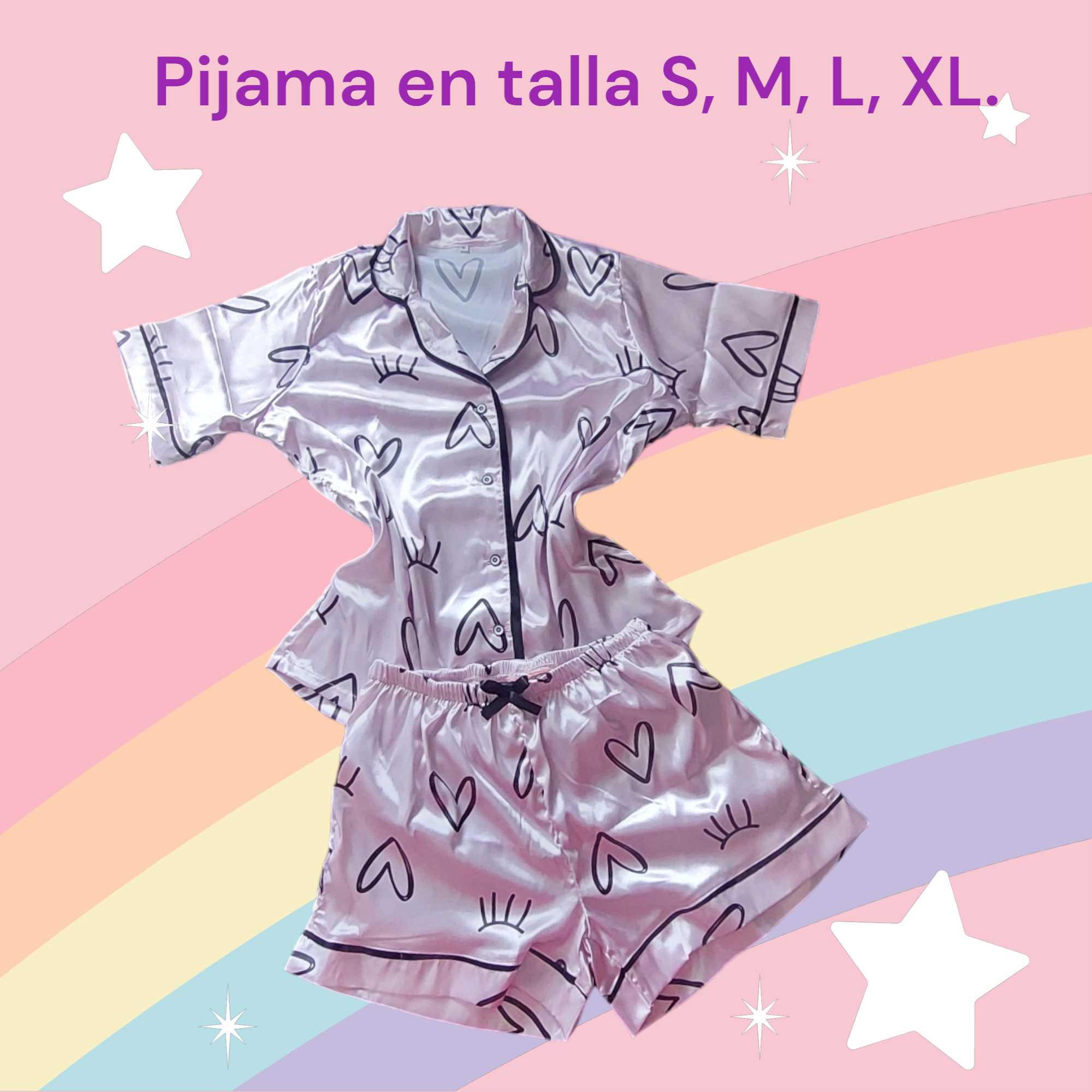 CAMISA Y SHORT EN SATIN DISEÑO CORAZONES
